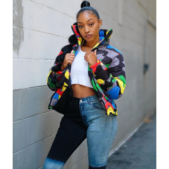 Cross-border women's new men and women can wear color camouflage printing bread clothing clothing cotton jacket