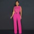 Amazon Foreign Trade Women's Fashion Heavy Duty Hot Drilling Sexy Sleeveless Round Neck Banquet Party Dress Jumpsuit Women Tide