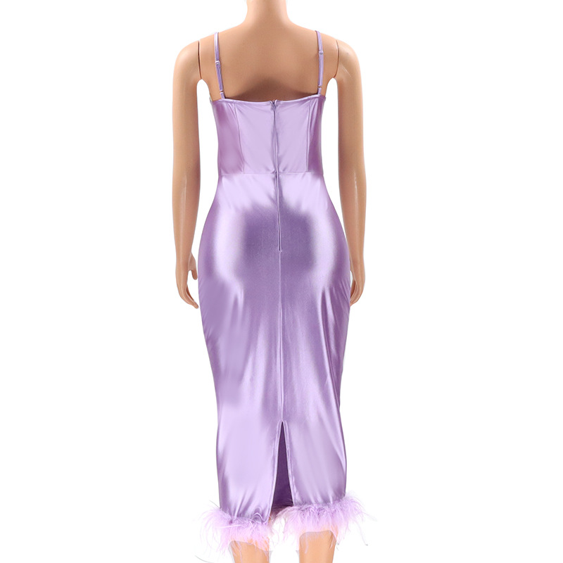 Cross-border Europe and the United States splicing wool halter dress long dress early fall new solid color satin halter dress sub