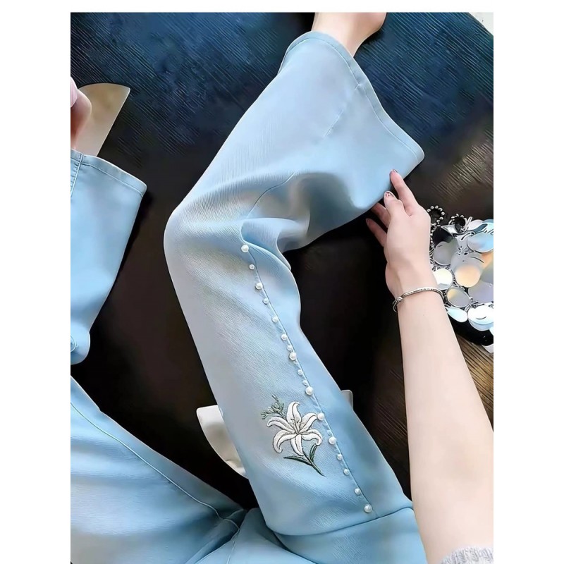 Blue Heavy Industry Beaded Embroidered Jeans for Women 2026 Summer New Arrival: Slimming, Fashionable, Slightly Flared, Versatile Casual Pants