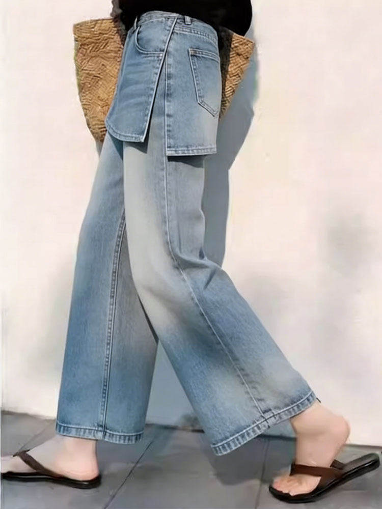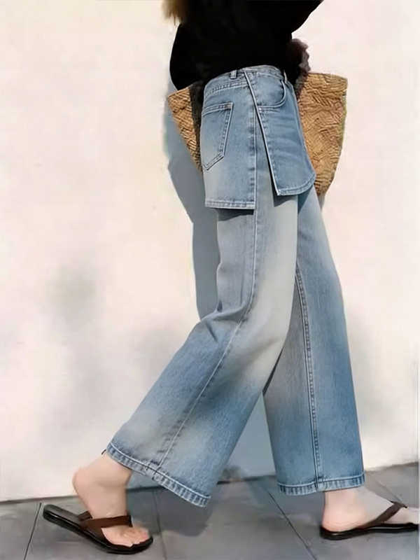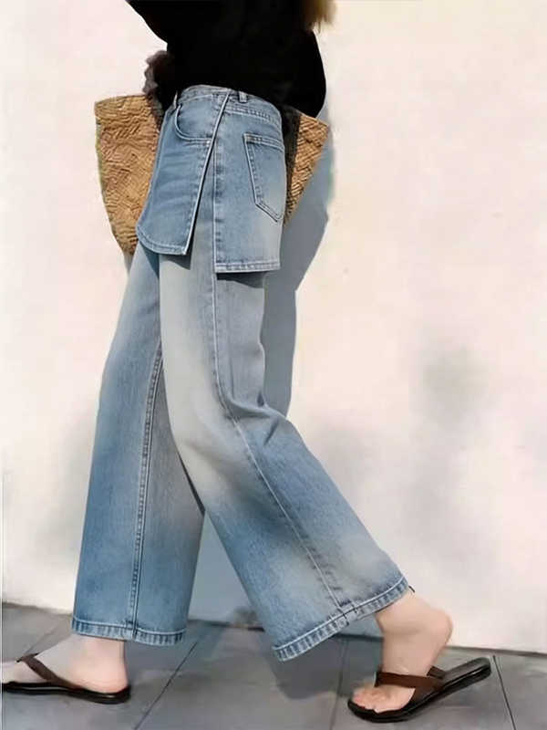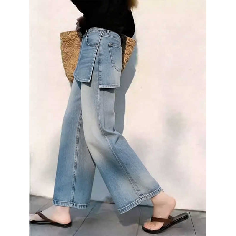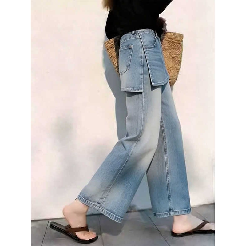 Pili High-Waisted Wide-Leg Jeans for Women: 2026 Spring New Arrival – Loose-Fitting, Slimming, Cropped, Simple, and Versatile Straight-Leg Pants